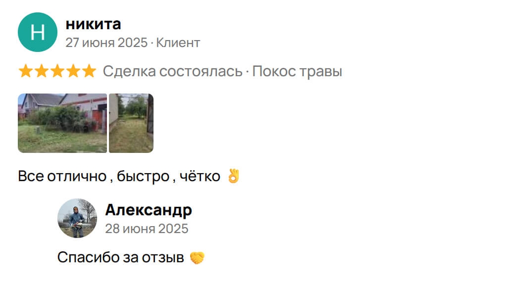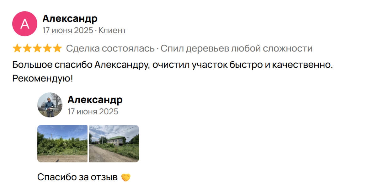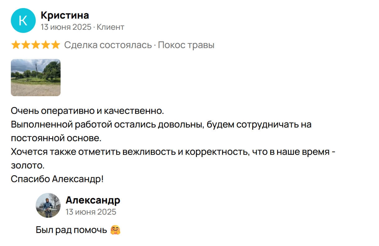 | Очистка участка от растительности | от 6000 ₽ за сотку | Ручная очистка. Кустарник, поросль, труднодоступные места. |